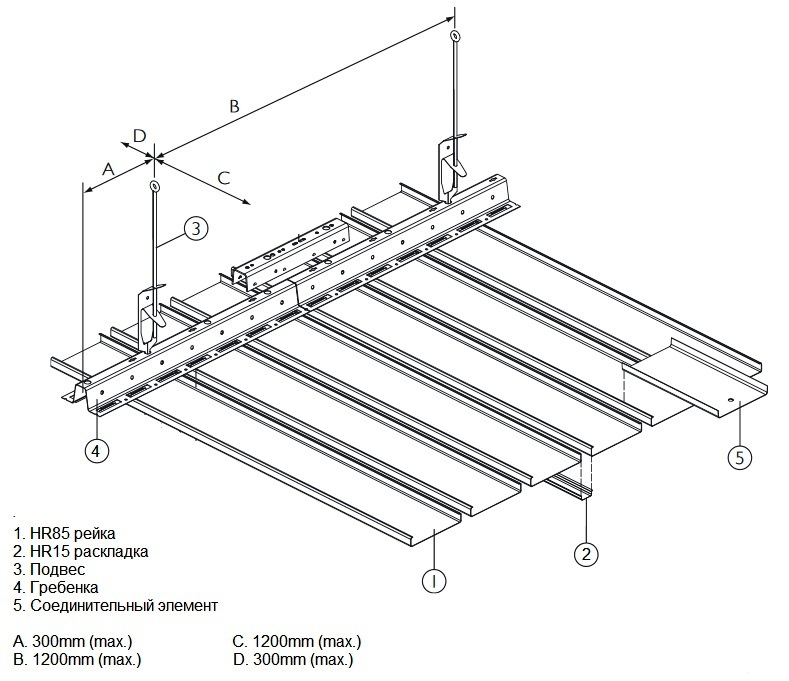 Панели могут поставляться любой длины от 1000 мм до 6000 мм, несущая направляющая (гребенка) имеет стандартную длину 4000 мм.